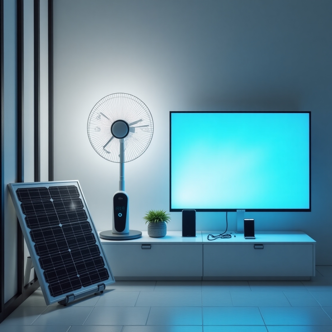Éclairage + chargeurs + petits appareils (ventilateur, TV)
